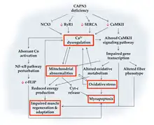 - 1 2 3 4 5 6 7 8 9 10 11 12 Lasa-Elgarresta, J; Mosqueira-Martín, L; Naldaiz-Gastesi, N; Sáenz, A; López de Munain, A; Vallejo-Illarramendi, A (13 September 2019). "Calcium Mechanisms in Limb-Girdle Muscular Dystrophy with CAPN3 Mutations". International Journal of Molecular Sciences. 20 (18): 4548. doi:10.3390/ijms20184548. PMC 6770289. PMID 31540302.