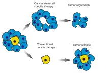 A diagram illustrating the distinction between cancer stem cell targeted and conventional cancer therapies