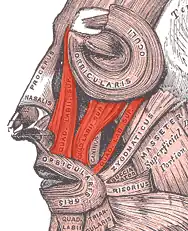 - the quadratus labii superioris muscle (levator labii superioris) superiorly
