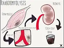 While statins are generally well-tolerated, severe adverse effects such as hepatotoxicity and myotoxicity may occur in rarity. Statin-induced hepatotoxicity can cause autoimmune hepatitis and an elevation in serum levels of hepatic enzymes such as alanine aminotransferase, impairing liver function.[20] Myotoxicity is commonly presented with statin-associated muscle symptoms (SAMS), which include myalgia and myositis.[21] In rare cases, they may progress into rhabdomyolysis, a condition manifested by muscle necrosis and myoglobinuria due to heightened creatine kinase levels.[22][23] Another consequence of taking statins is the risk of developing new-onset diabetes, which is more prominent in individuals with high TG levels and body mass index (BMI).[19] However, the risk is far outweighed by the benefits from statin therapy for the reduction in cardiovascular outcomes.[20]