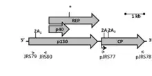 Genomes are linear, around 6.1kb in length. The genome codes for two proteins, and has three open reading frames.[1]
