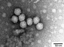 | Transmission electron micrograph of providence virus (PrV) virion | |