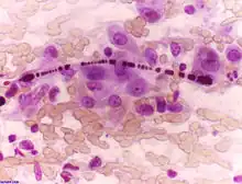 Certain bacterial infections also increase the risk of cancer, as seen in Helicobacter pylori-induced gastric carcinoma.[66] The mechanism by which H. pylori causes cancer may involve chronic inflammation or the direct action of some of the bacteria's virulence factors.[67] Parasitic infections strongly associated with cancer include Schistosoma haematobium (squamous cell carcinoma of the bladder) and the liver flukes, Opisthorchis viverrini and Clonorchis sinensis (cholangiocarcinoma).[68] Inflammation triggered by the worm's eggs appears to be the cancer-causing mechanism. Certain parasitic infections can also increase the presence of carcinogenic compounds in the body, leading to the development of cancers.[69] Tuberculosis infection, caused by the mycobacterium M. tuberculosis, has also been linked with the development of lung cancer.[70]