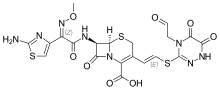 - ↑ Williamson R, Gutmann L, Kitzis MD, Acar JF (December 1984). "An evaluation of the bacteriolytic and biochemical properties of ceftiolene (42980RP)". The Journal of Antimicrobial Chemotherapy. 14 (6): 581–93. doi:10.1093/jac/14.6.581. PMID 6394571.