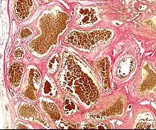 - ↑ Bravi L, Malinverno M, Pisati F, Rudini N, Cuttano R, Pallini R, et al. (March 2016). "Endothelial Cells Lining Sporadic Cerebral Cavernous Malformation Cavernomas Undergo Endothelial-to-Mesenchymal Transition". Stroke. 47 (3): 886–890. doi:10.1161/STROKEAHA.115.011867. PMID 26839352.