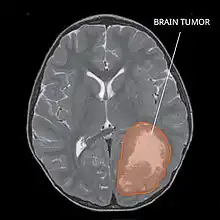 Several analysis can be used to determine the presence of the disease. Physical examinations showing papilledema, visual field defects, cranial nerves palsy, dysphasia, and focal neurological deficits are evidences for possible tumor.[2] PNETs can also be spotted through computed tomography (CT) and magnetic resonance imaging (MRI).[2] In images produced by MRIs, an irregular augmentation among a solid mass will indicated the presence of tumor.[3] However, the results of MRIs are usually ambiguous in defining the presence for this specific tumor.[2] In CT scans, the presence of PNETs will be indicated by an elevated density and an increase in volume of the brain.[2] The CT scan can also show calcification,[3] which is present in 41-44% of PNET cases.[2] Since the tumor can be replicated in other parts of the nervous system through the cerebrospinal fluid (CSF), a CSF analysis can also be conducted.[2] A spinal MRI is a fourth type of analysis that is useful in investigating the level of tumor propagation to the spinal cord.[2]