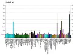 - ↑ Sampath P, Mazumder B, Seshadri V, Fox PL (Mar 2003). "Transcript-selective translational silencing by gamma interferon is directed by a novel structural element in the ceruloplasmin mRNA 3' untranslated region". Molecular and Cellular Biology. 23 (5): 1509–19. doi:10.1128/MCB.23.5.1509-1519.2003. PMC 151701. PMID 12588972.