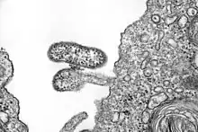 - 1 2 3 4 Delgado S, Erickson BR, Agudo R, Blair PJ, Vallejo E, Albariño CG, Vargas J, Comer JA, Rollin PE, Ksiazek TG, Olson JG, Nichol ST (April 2008). "Chapare virus, a newly discovered arenavirus isolated from a fatal hemorrhagic fever case in Bolivia". PLOS Pathog. 4 (4): e1000047. doi:10.1371/journal.ppat.1000047. PMC 2277458. PMID 18421377.
