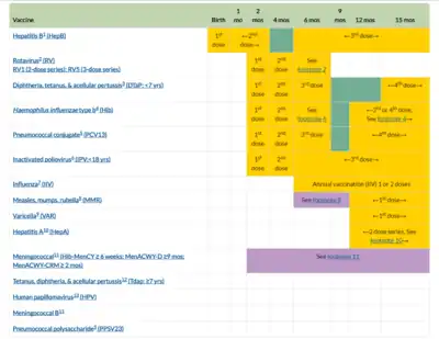 - ↑ "Immunization Schedules". CDC. Retrieved 16 September 2014.