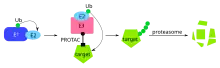 - ↑ Sakamoto KM, Kim KB, Kumagai A, Mercurio F, Crews CM, Deshaies RJ (July 2001). "Protacs: chimeric molecules that target proteins to the Skp1-Cullin-F box complex for ubiquitination and degradation". Proceedings of the National Academy of Sciences of the United States of America. 98 (15): 8554–8559. Bibcode:2001PNAS...98.8554S. doi:10.1073/pnas.141230798. PMC 37474. PMID 11438690.