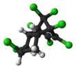 Hexachlorocyclopentadiene forms a Diels-Alder adduct with cyclopentadiene to give chlordene intermediate [3734-48-3]; chlorination of this adduct gives predominantly two chlordane isomers, α and β, in addition to other products such as trans-nonachlor and heptachlor.[7] The β-isomer is popularly known as gamma and is more bioactive.[5] The mixture that is composed of 147 components is called technical chlordane.[8][9]