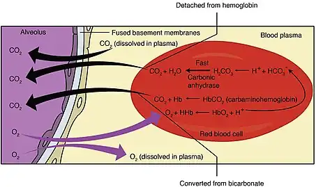 - ↑ Crandall ED, Mathew SJ, Fleischer RS, Winter HI, Bidani A (1981). "Effects of inhibition of RBC HCO3−/Cl− exchange on CO2 excretion and downstream pH disequilibrium in isolated rat lungs". J. Clin. Invest. 68 (4): 853–62. doi:10.1172/JCI110340. PMC 370872. PMID 6793631.