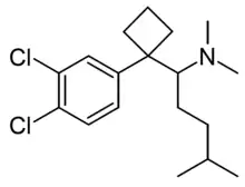 Chlorosipentramine is an analogue of the anorectic drug sibutramine, which has been sold as an ingredient in weight loss products sold as dietary supplements, first detected in South Korea in 2017.[1] It is one of a number of sibutramine derivatives which have been sold in grey-market weight loss products since sibutramine itself was taken off the market due to safety concerns. Others include desmethylsibutramine, didesmethylsibutramine, homosibutramine, chlorosibutramine, and benzylsibutramine.[2][3] Chlorosipentramine is illegal in South Korea along with other related compounds.[4][5]
