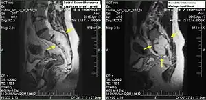 - 1 2 Senne J, Nguyen V, Staner D, Stensby JD, Bhat AP (January 2021). "Demystifying Sacral Masses: A Pictorial Review". The Indian Journal of Radiology & Imaging. 31 (1): 185–192. doi:10.1055/s-0041-1729766. PMC 8299490. PMID 34316126.