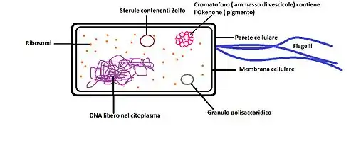 There is a great variety among Chromatiaceae species. From a physiological and morphological point of view, individual members can be distinguished from each other on the basis of cell size and shape (sphere, rod, vibrio, spirillum), motility (polar flagella-dependent motility or nonmotile members), presence of gas vesicles and ability to form cellular aggregates.[3]