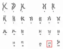 ![]() Chromosome 22 pair in human male karyogram. | |