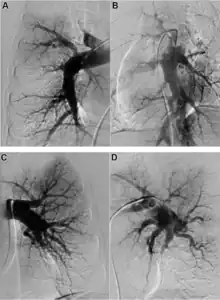 - ↑ He, Jia; Fang, Wei; Lv, Bin; He, Jian-Guo; Xiong, Chang-Ming; Liu, Zhi-Hong; He, Zuo-Xiang (May 2012). "Diagnosis of chronic thromboembolic pulmonary hypertension: comparison of ventilation/perfusion scanning and multidetector computed tomography pulmonary angiography with pulmonary angiography". Nuclear Medicine Communications. 33 (5): 459–463. doi:10.1097/MNM.0b013e32835085d9. ISSN 1473-5628. PMID 22262242. S2CID 22353466.