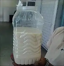 Chyluria, also called chylous urine, is a medical condition involving the presence of chyle in the urine stream,[1] which results in urine appearing milky white.[2] The condition is usually classified as being either parasitic or non parasitic. It is a condition that is more prevalent among people of Africa and the Indian subcontinent.