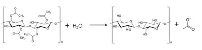 - ↑ Buchanan CM, Garder RM, Komarek RJ (1993). "Aerobic biodegradation of cellulose acetate". Journal of Applied Polymer Science. 47 (10): 1709–1719. doi:10.1002/app.1993.070471001.