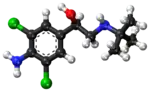 Clenbuterol is a sympathomimetic amine used by sufferers of breathing disorders as a decongestant and bronchodilator. People with chronic breathing disorders such as asthma use this as a bronchodilator to make breathing easier. It is most commonly available as the hydrochloride salt, clenbuterol hydrochloride.[2]