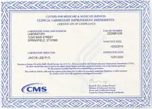 - ↑ "Clinical Laboratory Improvement Amendments (CLIA): How to obtain a CLIA Certificate" (PDF). CMS. Retrieved 27 January 2024.