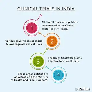 - ↑ Juneja, A; Adhikari, T (2018). "Clinical trials waiver in India-some considerations". Indian Journal of Pharmacology. 50 (2): 97. doi:10.4103/ijp.IJP_540_17. PMC 6044129. PMID 30100660.