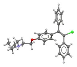 - 1 2 Baumann RJ, Bush TL, Cross-Doersen DE, Cashman EA, Wright PS, Zwolshen JH, et al. (March 1998). "Clomiphene analogs with activity in vitro and in vivo against human breast cancer cells". Biochemical Pharmacology. 55 (6): 841–51. doi:10.1016/s0006-2952(97)00574-1. PMID 9586957.
