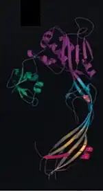 Quite surprisingly, the alpha toxin of C. septicum is not related to the alpha toxin of C. perfringens (another bacterium implicated in the pathogenesis of gas gangrene).[10] C. septicum alpha toxin does, however, exhibit similarities to aerolysin, another beta-pore forming toxin. Alpha toxin and aerolysin share approximately 72% sequence similarity and have numerous functional similarities as well.[13] Both proteins require cleavage by furin, or a furin-like protease, and then oligomerize to form transmembrane pores.[13][15] Similarities between the two toxins have also been discovered through analysis of the crystal structure of aerolysin. Aerolysin is a bilobar protein consisting of four domains (D1-D4).[15] The smallest lobe of aerolysin is missing in the alpha toxin of C. septicum, implying that the alpha toxin is monolobar with three domains, similar to domains D2-D4 in aerolysin.[15] Further research has led to the conclusions that the D1 domain is involved in receptor-binding and the D3 domain functions to prevent premature oligomerization of alpha toxin.[13]