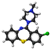 Clotiapine (Entumine) is an atypical antipsychotic[2] of the dibenzothiazepine chemical class.[3] It was first introduced in a few European countries (namely, Belgium, Italy, Spain and Switzerland), Argentina, Taiwan and Israel in 1970.[4]