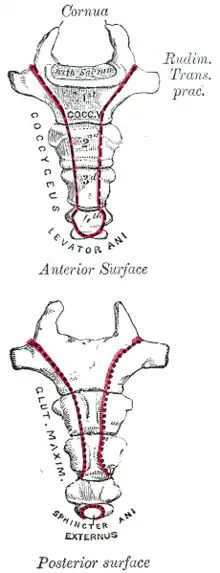 - ↑ Hanna, Tarek N.; Sadiq, Mahniya; Ditkofsky, Noah; Benayoun, Marc; Datir, Abhijit; Rohatgi, Saurabh; Khosa, Faisal (2016). "Sacrum and Coccyx Radiographs Have Limited Clinical Impact in the Emergency Department". American Journal of Roentgenology. 206 (4): 681–686. doi:10.2214/AJR.15.15095. ISSN 0361-803X. PMID 26867062.