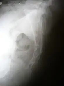 | Lateral radiograph showing a fracture of the coccyx, as well as a lower lumbar fracture | |