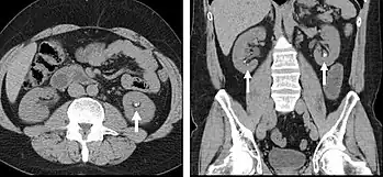 CT urography (CTU) is commonly used in the evaluation of hematuria, and specifically tailored to image the renal collecting system, ureters and bladder in addition to the renal parenchyma. Initial imaging includes a noncontrast phase to detect renal calculi as a source of hematuria. Note that dual energy CT may eventually allow the noncontrast phase to be eliminated. Contrast enhancement techniques for CTU vary from institution to institution. A common technique is a double bolus, single phase imaging algorithm. Excretory phase imaging allows for not only evaluation of the ureteral lumen, but also periureteral abnormalities including external masses and lymphadenopathy.