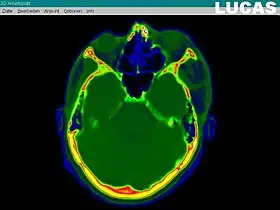 The most important component for CAS is the development of an accurate model of the patient. This can be conducted through a number of medical imaging technologies including CT, MRI, x-rays, ultrasound plus many more. For the generation of this model, the anatomical region to be operated has to be scanned and uploaded into the computer system. It is possible to employ a number of scanning methods, with the datasets combined through data fusion techniques. The final objective is the creation of a 3D dataset that reproduces the exact geometrical situation of the normal and pathological tissues and structures of that region. Of the available scanning methods, the CT is preferred,[1] because MRI data sets are known to have volumetric deformations that may lead to inaccuracies. An example data set can include the collection of data compiled with 180 CT slices, that are 1 mm apart, each having 512 by 512 pixels. The contrasts of the 3D dataset (with its tens of millions of pixels) provide the detail of soft vs hard tissue structures, and thus allow a computer to differentiate, and visually separate for a human, the different tissues and structures. The image data taken from a patient will often include intentional landmark features, in order to be able to later realign the virtual dataset against the actual patient during surgery. See patient registration.