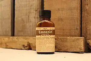 Emmenin was an orally active formulation of estrogen that was developed by James Collip at Ayerst and introduced in Canada in 1930 and the United States in 1934.[3][4] It was originally an extract obtained from human placenta.[20][21][22][23][24] At some point, it seems to have been changed to an extract of the urine of women who were in late pregnancy, which was equivalent in composition but was less expensive to source,[25] and was essentially the same product as Progynon, a related estrogen developed by Adolf Butenandt at Schering and introduced in Germany.[3][4][5][6][7][8] These estrogen products were the first orally active estrogens to be marketed for medical use.[4][8][26][27]