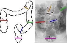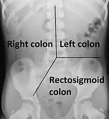 - 1 2 Koppen IJ, Yacob D, Di Lorenzo C, Saps M, Benninga MA, Cooper JN, et al. (March 2017). "Assessing colonic anatomy normal values based on air contrast enemas in children younger than 6 years". Pediatric Radiology. 47 (3): 306–312. doi:10.1007/s00247-016-3746-0. PMC 5316394. PMID 27896373.