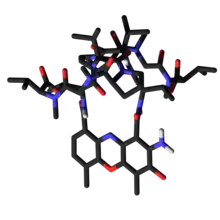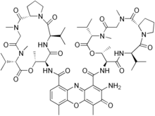 - 1 2 Shafer RH, Formica JV, Delfini C, Brown SC, Mirau PA (December 1982). "Biosynthesis and characterization of [15N]actinomycin D and conformational analysis by nitrogen-15 nuclear magnetic resonance". Biochemistry. 21 (25): 6496–6503. doi:10.1021/bi00268a027. PMID 6129895.