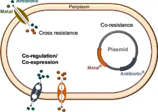 - ↑ Baker-Austin, Craig; Wright, Meredith S.; Stepanauskas, Ramunas; McArthur, J.V. (April 2006). "Co-selection of antibiotic and metal resistance". Trends in Microbiology. 14 (4): 176–182. doi:10.1016/j.tim.2006.02.006. PMID 16537105.