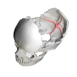 The cruciform eminence (or cruciate eminence) divides the deeply concave internal surface of the occipital bone into four fossae: