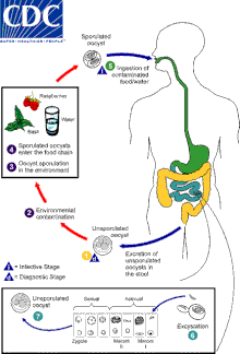 - ↑ "Parasites-Cyclosporiasis (Cyclospora Infection). Biology". Global Health - Division of Parasitic Diseases and Malaria Notice. Retrieved March 17, 2015.