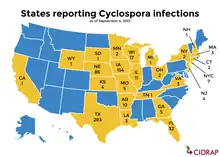 - ↑ "Cyclosporiasis Outbreak Investigations — United States, 2020". 24 September 2020.