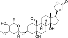 Cymarin (or cymarine) is a cardiac glycoside. Plants of the genus Apocynum, including Apocynum cannabinum and Apocynum venetum, contain cymarin.[1] Cymarin is a cardiac glycoside and an anti-arrhythmia and cardiotonic agent.[2]