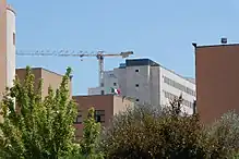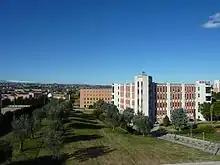 D'Annunzio University's 48.9 acres (19.8 ha) main campus is centered on Madonna delle Piane in Chieti Scalo, about 3 miles (5 km) northwest of downtown Chieti. Its facilities are organised within a unitary structure which includes natural elements and pre-existing buildings.[27] It is the statutory seat of the university and contains the central administrative offices, including the rectorate and general directorate. Most of the D'Annunzio University's academic programs are located on the campus in Madonna delle Piane, which houses two schools and seven departments including the School of Advanced Studies. It contains the main libraries of the university as well as five research centres.[28]