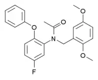 DAA-1106 is a drug which acts as a potent and selective agonist at the peripheral benzodiazepine receptor, also known as the mitochondrial 18 kDa translocator protein or TSPO, but with no affinity at the GABAA receptor. It has anxiolytic effects in animal studies.[1][2][3] DAA-1106 has a sub-nanomolar binding affinity (Ki) of 0.28 nM, and has been used extensively in its 3H or 11C radiolabelled form to map TSPO in the body and brain, which has proved especially helpful in monitoring the progress of neurodegenerative diseases such as Alzheimer's disease.[4][5][6][7][8][9]