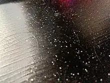 Dandruff scale is a cluster of corneocytes, which have retained a large degree of cohesion with one another and detach as such from the surface of the stratum corneum. A corneocyte is a protein complex that is made of tiny threads of keratin in an organised matrix.[26] The size and abundance of scales are heterogeneous from one site to another and over time. Parakeratotic cells often make up part of dandruff. Their numbers are related to the severity of the clinical manifestations, which may also be influenced by seborrhea.[7]