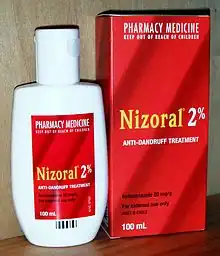 Antifungal treatments including piroctone olamine, ketoconazole (Sebizole), zinc pyrithione, and selenium disulfide (Selsun Blue) have been found to be effective.[11] Ketoconazole appears to have a longer duration of effect.[11] Ketoconazole is a broad-spectrum antimycotic agent that is active against Candida and M. furfur. Of all the antifungals of the imidazole class, ketoconazole has become the leading contender among treatment options because of its effectiveness in treating seborrheic dermatitis as well.[7]