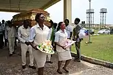 In other countries, the social practices around deathcare vary compared to the U.S. For instance, in Hindu culture, women have been barred from attending cremation rituals, and even from touching the deceased.[13] Before World War Two in Britain, women were "commonly responsible for laying-out the body", but following the war were barred from such a role given the expedient professionalization of the deathcare industry.[14]