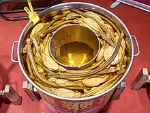 During the 2008 Summer Olympics in China, the country banned deer penis wine, turtle blood and angelica root supplements from athletes' diets.[4] This is because according to traditional Chinese medicine, deer penis, especially if ingested while soaked in alcohol (deer penis wine), is an effective remedy for athletic injuries. Chinese Olympic officials advised national athletes not to take the traditional remedy because it may contain the banned herb Ephedra. It joined steroids and various stimulants on the list of banned substances. When consumed, a deer penis or tiger penis is also said to enhance strength, and is thought by some to be an aphrodisiac.[5]