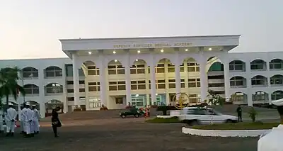 The Defense Services Medical Academy (DSMA) (Burmese: တပ်မတော် ဆေး တက္ကသိုလ်, pronounced [taʔmədɔ̀ sʰé tɛʔkəθò]), located in Mingaladon, Yangon, is the University of Medicine of the Myanmar Armed Forces. One of the most selective universities in the country, the academy offers M.B., B.S. (equivalent of the M.D.) degree programs. Upon graduation, most DSMA cadets are commissioned with the rank of Lieutenant in the Myanmar Army Medical Corps. The military physicians are to serve the healthcare needs of rural people when they are assigned in the country's remote regions where access to healthcare is poor.