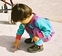 Childhood is divided into three stages of life which include early childhood, middle childhood, and late childhood (preadolescence).[2] Early childhood typically ranges from infancy to the age of 6 years old. During this period, development is significant, as many of life's milestones happen during this time period such as first words, learning to crawl, and learning to walk. Middle childhood/preadolescence or ages 6–12 universally mark a distinctive period between major developmental transition points.[2] Adolescence is the stage of life that typically starts around the major onset of puberty, with markers such as menarche and spermarche, typically occurring at 12–14 years of age.[3] It has been defined as ages 10 to 24 years old by the World Happiness Report WHR.[1] In the course of development, the individual human progresses from dependency to increasing autonomy. It is a continuous process with a predictable sequence, yet has a unique course for every child. It does not always progress at the same rate and each stage is affected by the preceding developmental experiences. As genetic factors and events during prenatal life may strongly influence developmental changes, genetics and prenatal development usually form a part of the study of child development. Related terms include developmental psychology, referring to development from birth to death, and pediatrics, the branch of medicine relating to the care of children.