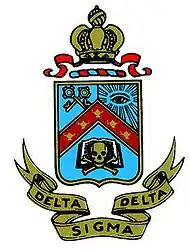 The Greek letters ΔΣΔ represent the letters D.D.S. of the dental degree, although with a transposed sequence.[2] The fraternity's colors are blue and garnet.[5] Its motto is "Knowledge, Strength, Justice".